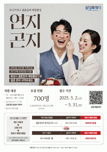 [»çȸ] È­¼ºÆ¯·Ê½Ã, Àü±¹ ÃÖÃÊ °áÈ¥ Àå·Á ¸ÅĪ ÅëÀå ¡®¿¬Áö°ïÁö ÅëÀ塯 »ç¾÷ ½ÃÇà! û³âµé °áÈ¥ Áغñ ºÎ´ã ´ø´Ù |2025. 05.01