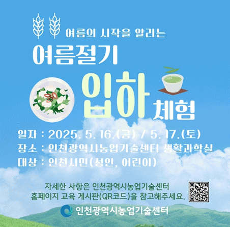 [»çȸ] ÀÎõ½Ã ³ó¾÷±â¼ú¼¾ÅÍ, ¿©¸§ Àý±â ÀÔÇÏ ¸ÂÀÌ Ã¼ÇèÇà»ç ¿î¿µ |2025. 05.01
