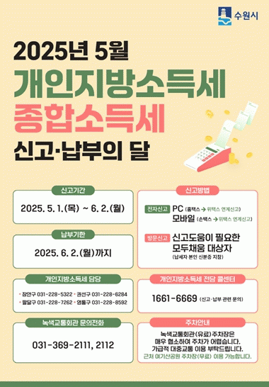 [»çȸ] ¼ö¿ø½Ã ±Ç¼±±¸, ¡°°³ÀÎÁö¹æ¼Òµæ¼¼, 6¿ù 2ÀϱîÁö Æí¸®ÇÏ°Ô ½Å°í ¹× ³³ºÎÇϼ¼¿ä¡± |2025. 05.01