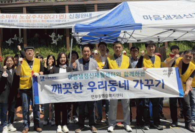[NWS¹æ¼Û=Çѽ¸ñ ±âÀÚ]¼ö¿ø½Ã Àå¾È±¸ ¿¬¹«µ¿Àº Áö³­ 30ÀÏ, ¿Ï¿¬ÇÑ º½À» ¸Â¾Æ ¸¶À½»ùÁ¤½ÅÀçȰ¼¾ÅÍ¿Í ÇÔ²² ¡®±ú²ýÇÑ ¿ì¸®µ¿³× °¡²Ù±â¡¯ ȯ°æÁ¤ºñ¸¦ ½Ç½ÃÇß´Ù. À̹ø ȯ°æÁ¤ºñ Ȱµ¿¿¡´Â ¸¶À½»ùÁ¤½ÅÀçȰ¼¾ÅÍ Á÷¿ø ¹× °ü°èÀÚ¿Í ¿¬¹«µ¿ Á÷¿ø µî¡¦