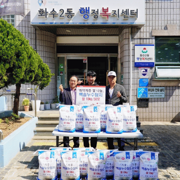 [NWS¹æ¼Û=Çѽ¸ñ ±âÀÚ]ÀÎõ µ¿±¸ È­¼ö2µ¿ Áö¿ª»çȸº¸ÀåÇùÀÇü´Â Áö³­´Þ 29ÀÏ ¹é¼Ö´©¼öŽÁö(´ëÇ¥ ±èÀç±¹)¿Í Ãë¾à°èÃþ Áö¿ø ½Ò ³ª´® ±âʽÄÀ» ¿­¾ú´Ù°í ¹àÇû´Ù. ¹é¼Ö´©¼öŽÁö´Â Áö¿ª ³» ¼Ò¿ÜµÈ ÀÌ¿ô¿¡°Ô µµ¿òÀ» ÁÖ±â À§ÇØ 10kg ½Ò 50Æ÷¸¦ ¡¦