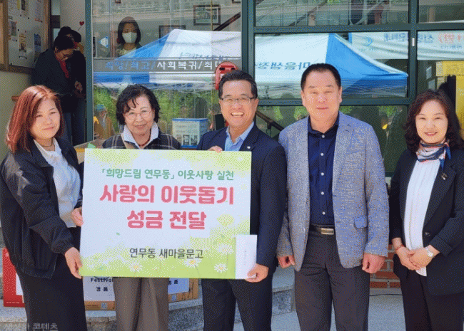 [NWS¹æ¼Û=Çѽ¸ñ ±âÀÚ]¼ö¿ø½Ã Àå¾È±¸ ¿¬¹«µ¿ »õ¸¶À»¹®°í´Â Áö³­ 30ÀÏ, ºÏÄ«Æä ¿î¿µÀ¸·Î ¹ß»ýÇÑ ¼öÀÍ±Ý Àü¾×À» Áö¿ª ³» Á¤½ÅÀçȰ¼¾ÅÍÀÎ ¡®¸¶À½»ù¡¯¿¡ ÀÌ¿ôµ½±â ¼º±ÝÀ¸·Î Àü´ÞÇß´Ù°í ¹àÇû´Ù. À̹ø ¼º±ÝÀº ¿¬¹«µ¿ »õ¸¶À»¹®°í°¡ ºÏÄ«Æä¸¦ ¿î¡¦