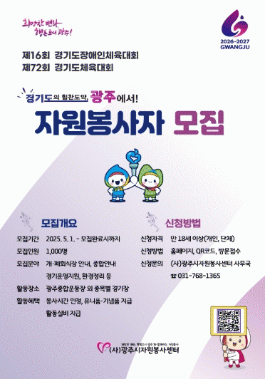 [NWS¹æ¼Û=¼­Çö¼® ±âÀÚ]±¤ÁÖ½Ã¿Í ±¤ÁÖ½ÃÀÚ¿øºÀ»ç¼¾ÅÍ´Â ¡®Á¦16ȸ °æ±âµµÀå¾ÖÀÎüÀ°´ëȸ¡¯ ¹× ¡®Á¦72ȸ °æ±âµµÃ¼À°´ëȸ¡¯ÀÇ ¼º°øÀûÀÎ °³ÃÖ¸¦ À§ÇØ 1õ¿© ¸íÀÇ ÀÚ¿øºÀ»çÀÚ¸¦ ¸ðÁýÇÑ´Ù°í 1ÀÏ ¹àÇû´Ù. À̹ø üÀ°´ëȸ´Â 2026³â 4¿ù ¸»ºÎÅÍ 5¿ù¡¦