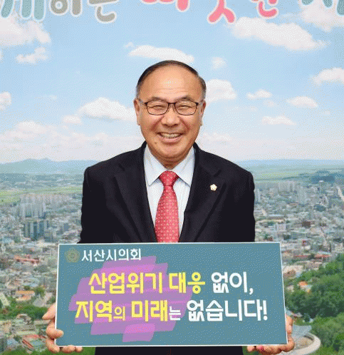 [NWS¹æ¼Û=Çѽ¸ñ ±âÀÚ] ¼­»ê½ÃÀÇȸ Á¶µ¿½Ä ÀÇÀåÀÌ Áö³­ 30ÀÏ, »çȸ°ü°è¸Á¼­ºñ½º(SNS)¿¡ ¡®»ê¾÷À§±â ´ëÀÀ ¾øÀÌ, Áö¿ªÀÇ ¹Ì·¡´Â ¾ø½À´Ï´Ù¡¯¶ó´Â ¸Þ½ÃÁö°¡ ´ã±ä ÇÇÄÏÀ» µé°í ÀÖ´Â ÀÎÁõ»çÁøÀ» °Ô½ÃÇϸç, ¡®»ê¾÷À§±â ¼±Á¦ ´ëÀÀÁö¿ª ÁöÁ¤ Ã˱¸¡¯¡¦