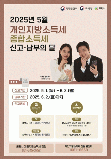 [NWS¹æ¼Û=Çѽ¸ñ ±âÀÚ]Àǿսô ½Ã¹ÎµéÀÇ¡®2024³â ±Í¼Ó °³ÀÎÁö¹æ¼Òµæ¼¼(Á¾Çռҵ漼)ÀÇ ½Å°í¿Í ³³ºÎ¡¯¸¦ µ¶·ÁÇÏ°í ³ª¼¹´Ù. 5¿ùÀº 2024³â ±Í¼Ó °³ÀÎÁö¹æ¼Òµæ¼¼(Á¾Çռҵ漼) È®Á¤½Å°íÀÇ ´Þ·Î, 2024³âµµ¿¡ Á¾ÇÕ¼ÒµæÀÌ ÀÖ´Â °³ÀÎÀº ¿À´Â 6¿ù ¡¦