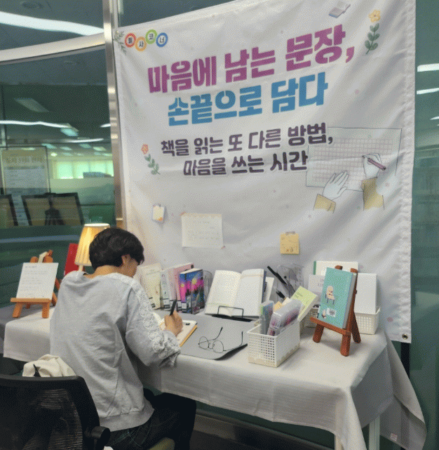 [NWS¹æ¼Û=Çѽ¸ñ ±âÀÚ]¿µÁֽô 5¿ùºÎÅÍ 11¿ù±îÁö ¿µÁֽø³µµ¼­°ü ÀϹÝÀÚ·á½Ç ³»¿¡ ¡®ÇÊ»ç Äڳʡ¯¸¦ ¿î¿µÇϸç, ½Ã¹Îµé¿¡°Ô »õ·Î¿î µ¶¼­ üÇèÀÇ ±âȸ¸¦ Á¦°øÇÑ´Ù. ¡®¸¶À½¿¡ ³²´Â ¹®Àå, ¼Õ³¡À¸·Î ´ã´Ù¡¯¸¦ ÁÖÁ¦·Î ¿î¿µµÇ´Â À̹ø ÇÊ»ç Äڳʡ¦