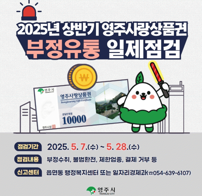 [»çȸ] ¿µÁÖ½Ã, ¿µÁÖ»ç¶û»óǰ±Ç ºÎÁ¤À¯Åë ÀÏÁ¦´Ü¼Ó ½Ç½Ã |2025. 05.01