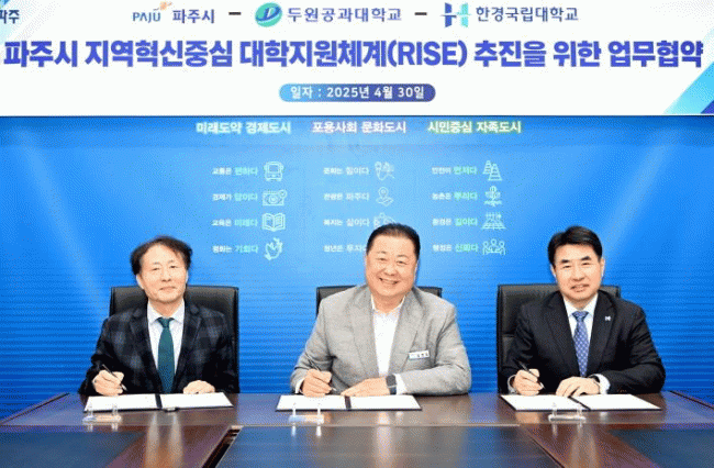 [»çȸ] ÆÄÁÖ½Ã-ÇѰ汹¸³´ëÇб³-µÎ¿ø°ø°ú´ë, Áö¿ªÇõ½ÅÁ᫐ ´ëÇÐÁö¿øÃ¼°è(RISE) ±¸Ãà À§ÇÑ ¾÷¹« Çù¾à |2025. 05.01