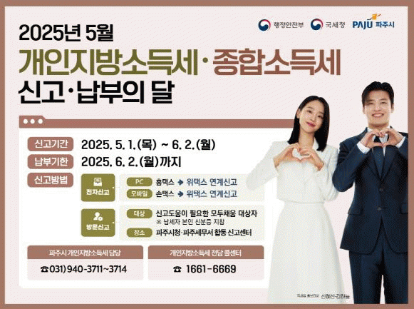 [»çȸ] ÆÄÁÖ½Ã, 5¿ù °³ÀÎÁö¹æ¼Òµæ¼¼ ÇÕµ¿ ½Å°í¼¾ÅÍ ¿î¿µ¡¦6¿ù 2ÀϱîÁö |2025. 05.01