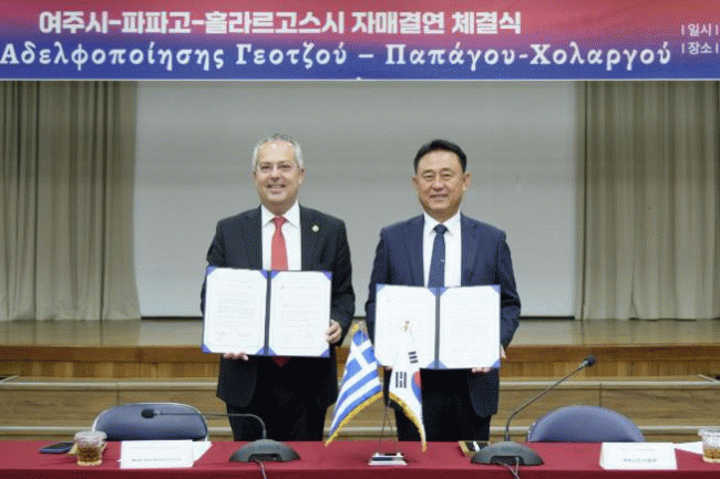 [NWS¹æ¼Û=Çѽ¸ñ ±âÀÚ]¿©Áֽô 2025³â 4¿ù 30ÀÏ ¿ÀÀü 10½Ã, ¿©ÁÖ½Ãû 4Ãþ ´ëȸÀǽǿ¡¼­ ±×¸®½º ÆÄÆÄ°í-Ȧ¶ó¸£°í½º½Ã(Papagou-Cholargos)¿Í °ø½Ä ÀڸŰῬ Çù¾àÀ» ü°áÇß´Ù. À̳¯ ü°á½Ä¿¡´Â ÀÌÃæ¿ì ¿©ÁÖ½ÃÀåÀ» ºñ·ÔÇØ ÆÄÆÄ°í-Ȧ¶ó¸£°í½º¡¦