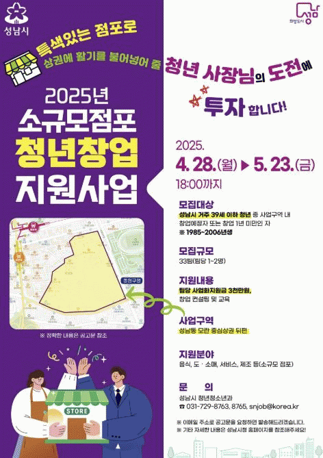 [»çȸ] ¼º³²½Ã 'û³â 33°³ ÆÀ' ¼Ò±Ô¸ð Á¡Æ÷ â¾÷ Áö¿ø |2025. 05.01