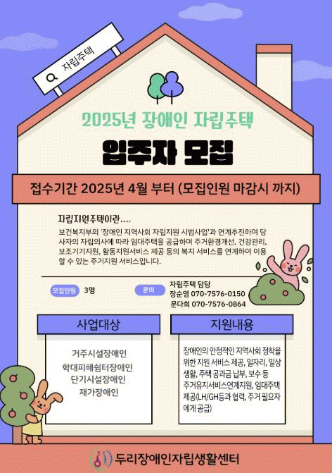 [»çȸ] ½ÃÈï½Ã, ½Ã¼³ ¹× Àç°¡Àå¾ÖÀÎÀÇ Áö¿ª»çȸ Á¤Âø µµ¿ï 'Àå¾ÖÀÎ ÀÚ¸³ÁÖÅÃ' Áö¿ø ´ë»ó È®´ë |2025. 05.01
