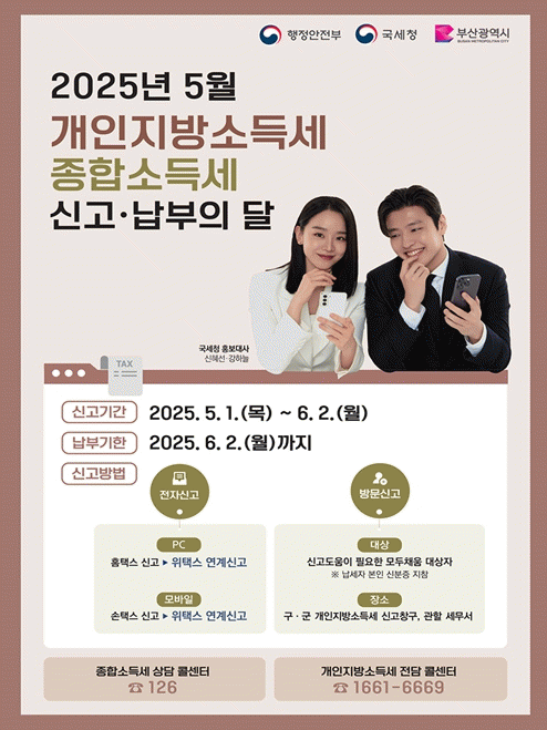 [NWS¹æ¼Û=Çѽ¸ñ ±âÀÚ] ºÎ»ê½Ã´Â 2024³â ±Í¼Ó °³ÀÎÁö¹æ¼Òµæ¼¼(Á¾ÇÕ¼ÒµæºÐ) È®Á¤½Å°í¿Í ³³ºÎ¸¦ ¿À´Ã(1ÀÏ)ºÎÅÍ 6¿ù 2ÀϱîÁö ÇØ¾ß ÇÑ´Ù°í ¹àÇû´Ù. ¼º½Ç½Å°í È®ÀÎ ´ë»óÀÚ´Â 6¿ù 30ÀϱîÁö È®Á¤½Å°í¡¤³³ºÎÇÏ¸é µÈ´Ù. ½Å°í ¹æ¹ýÀº ±¹¼¼Ã» Ȩ¡¦
