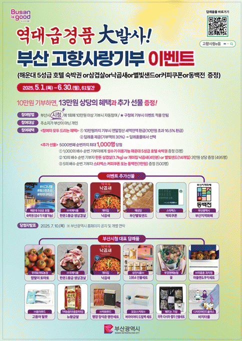 [°æÁ¦] ºÎ»ê½Ã, 2025³â °íÇâ»ç¶û±âºÎÁ¦ ´ä·Êǰ Ãß°¡ ¼±Á¤¡¦ '¿ª´ë±Þ °æÇ° ´ë(ÓÞ)¹ß»ç! À̺¥Æ®' ¿­¾î |2025. 05.01