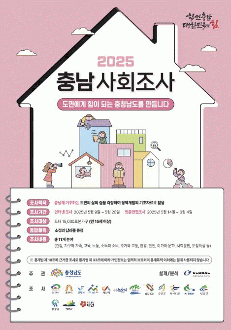 [NWS¹æ¼Û=Çѽ¸ñ ±âÀÚ]È«¼º±ºÀº ¿À´Â 9ÀϺÎÅÍ 6¿ù 4ÀϱîÁö È«¼º±º °ÅÁÖ 980°³ Ç¥º»°¡±¸ÀÇ ¸¸ 15¼¼ ÀÌ»ó °¡±¸¿øÀ» ´ë»óÀ¸·Î 2025³â Ãæ³² »çȸÁ¶»ç¸¦ ½Ç½ÃÇÑ´Ù. Á¶»çÇ׸ñÀº °Ç°­, °¡±¸¿Í °¡Á·, ±³À°, ³ëµ¿ µî Ãæ³² °øÅë Ç׸ñ 49°³¿Í È«¼º±º¡¦