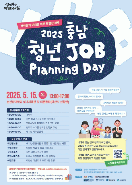 [NWS¹æ¼Û=ÇãÀº¼­ ±âÀÚ] Ãæ³²µµ´Â ¿À´Â 15ÀÏ ¼øÃµÇâ´ë ÀÏ¿ø¿¡¼­ û³âµéÀÇ ¼º°øÀûÀÎ »çȸ ÁøÃâ°ú ¹Ì·¡ ¼³°è¸¦ Áö¿øÇϱâ À§ÇÑ ¡®2025 Ãæ³² û³â Àâ Ç÷¡´× µ¥ÀÌ(Job Planning Day)¡¯¸¦ °³ÃÖÇÑ´Ù°í 1ÀÏ ¹àÇû´Ù. À̹ø Çà»ç´Â û³âµé¿¡°Ô Áø¡¦