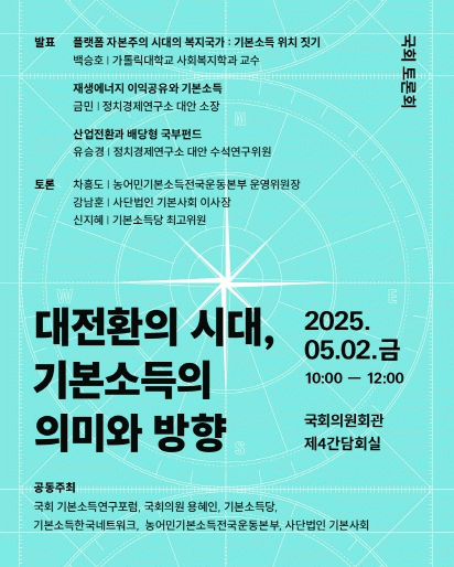 [NWS¹æ¼Û=Çѽ¸ñ ±âÀÚ] ±¹È¸±âº»¼Òµæ¿¬±¸Æ÷·³, (»ç)±âº»»çȸ, ±âº»¼ÒµæÇѱ¹³×Æ®¿öÅ© µî Á¤Ä¡±Ç ¾ÈÆÆÀÇ ±âº»¼Òµæ ¿îµ¿Áø¿µÀÌ Á¶±â´ë¼±À» ¾ÕµÎ°í ÇÑÀÚ¸®¿¡¼­ ¸ðÀδÙ. 5¿ù 2ÀÏ, ¿ÀÀü 10½Ã ±¹È¸ÀÇ¿øÈ¸°ü Á¦4°£´ãȸÀǽǿ¡¼­ Åä·Ðȸ '´ëÀüȯÀÇ ¡¦