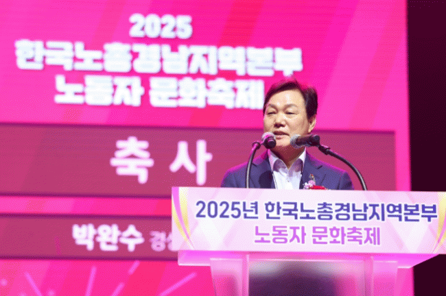 [NWS¹æ¼Û=Çѽ¸ñ ±âÀÚ]°æ»ó³²µµ´Â 30ÀÏ KBS â¿øÈ¦¿¡¼­ ¿­¸° ¡®2025³â Çѱ¹³ëÃÑ °æ³²Áö¿ªº»ºÎ ³ëµ¿ÀÚ ¹®È­ÃàÁ¦¡¯¿¡¼­ µµ³» ³ëµ¿ÀÚµéÀ» °Ý·ÁÇß´Ù. À̳¯ Çà»ç¿¡ Âü¼®ÇÑ ¹Ú¿Ï¼ö µµÁö»ç´Â Ãà»ç¸¦ ÅëÇØ ¡°¿©·¯ºÐÀÇ ¶¡°ú ¿­Á¤ÀÌ ´ëÇѹα¹À» Áö¡¦