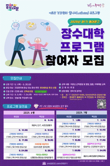 [»çȸ] ¿îµ¿ºÎÅÍ Ä¡¸Å ¿¹¹æ±îÁö! ¡®µ¿´ë¹®±¸ Àå¼ö´ëÇС¯ Âü¿©ÀÚ ¸ðÁý |2025. 04.30