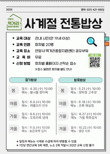[»çȸ] ¾È¾ç½Ã ¸Ô°Å¸®Á¾ÇÕÁö¿ø¼¾ÅÍ, ½Ã¹Î´ë»ó¡®»ç°èÀý ÀüÅë¹ä»ó¡¯±³À° ÃßÁø |2025. 04.30