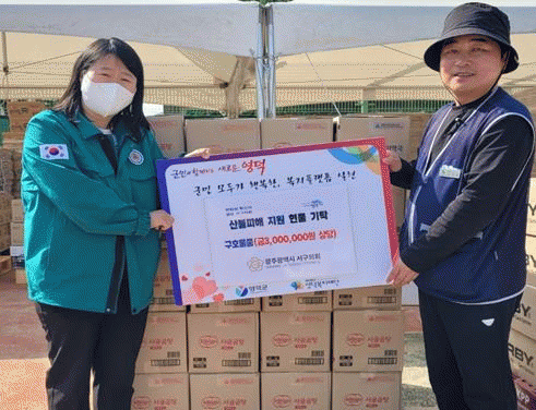 [NWS¹æ¼Û=Çѽ¸ñ ±âÀÚ]±¤ÁÖ ¼­±¸ÀÇȸ´Â ÃÖ±Ù ´ëÇü »êºÒ·Î ¸·´ëÇÑ ÇÇÇØ¸¦ ÀÔÀº °æºÏ ¿µ´ö±º »êºÒÀç³­ ÇÇÇØÁö¿ª ÁֹεéÀ» µ½±â À§ÇØ, ¼­±¸ÀÇȸ Á¦34Áֳ⠰³¿ø ±â³ä½ÄÀÇ Çà»ç¿¡¼­ Àý°¨ÇÑ ¿¹»ê 300¸¸¿ø »ó´çÀÇ ±ä±Þ ±¸È£ ¹°Ç°(°£Æí½Ä)À» 4¿ù ¡¦