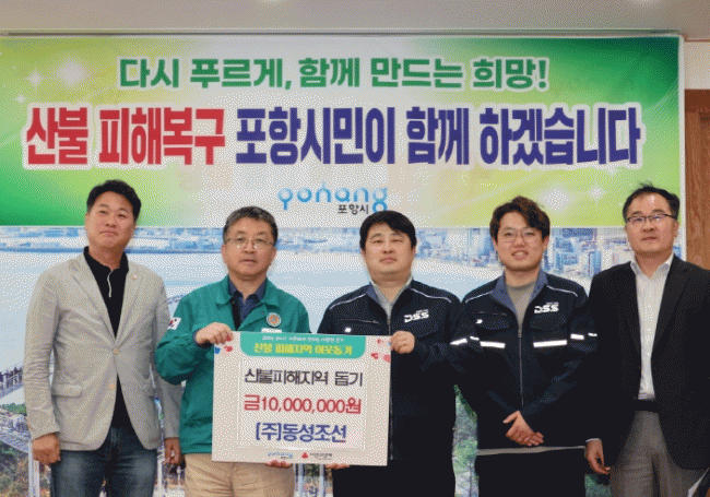 [NWS¹æ¼Û=Çѽ¸ñ ±âÀÚ] Æ÷Ç׽ô Áö³­ 29ÀÏ ½Ãû ´ë¿ÜÇù·Â½Ç¿¡¼­ °æºÏ Áö¿ª »êºÒ ÇÇÇØ º¹±¸¸¦ À§ÇÑ ¼º±Ý Àü´Þ½ÄÀ» ÁøÇàÇß´Ù. Æ÷Ç×¼öÇù°ú 13°³ ¾î¾÷ÀÎ ´Üü´Â 2,055¸¸ ¿øÀÇ ¼º±ÝÀ» ¸¶·ÃÇØ °æºÏ »êºÒ ÇÇÇØ Áö¿ª ÁֹεéÀ» À§ÇØ Àü´ÞÇß´Ù¡¦
