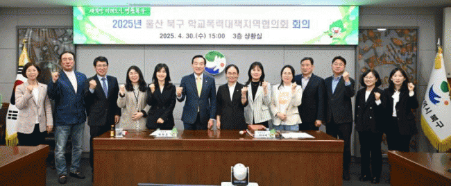 [NWS¹æ¼Û=Çѽ¸ñ ±âÀÚ]¿ï»ê ºÏ±¸´Â 30ÀÏ ±¸Ã» »óȲ½Ç¿¡¼­ 2025³â Çб³Æø·Â´ëÃ¥Áö¿ªÇùÀÇȸ ȸÀǸ¦ ¿­°í, Çб³Æø·Â ¿¹¹æÀ» À§ÇÑ ±âº»°èȹÀ» ½ÉÀÇÇß´Ù. ºÏ±¸ Çб³Æø·Â´ëÃ¥Áö¿ªÇùÀÇȸ´Â û¼Ò³â º¸È£¿Í Çб³Æø·Â¿¹¹æÀ» À§ÇØ °­ºÏ±³À°Áö¿øÃ», ¡¦