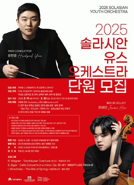 [»çȸ] ´ë±¸Äܼ­Æ®ÇϿ콺 ²Þ°ú ¿­Á¤ÀÇ Ã»³â À½¾Ç°¡µé, ¸ð¿©¶ó! 2025 ¼Ö¶ó½Ã¾È À¯½º ¿ÀÄɽºÆ®¶ó¡¯´Ü¿ø ¸ðÁý |2025. 04.30