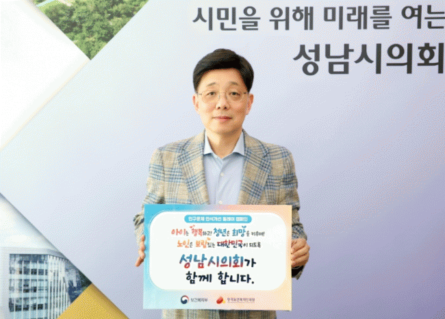 [NWS¹æ¼Û=Çѽ¸ñ ±âÀÚ]¼º³²½ÃÀÇȸ ¾È±¤¸² ºÎÀÇÀåÀÌ ¡®Àα¸¹®Á¦ Àνݳ¼±À» À§ÇÑ ¸±·¹ÀÌ Ä·ÆäÀΡ¯¿¡ µ¿ÂüÇϸç, Àα¸°¨¼Ò¿Í °í·ÉÈ­ ¹®Á¦¿¡ ´ëÇÑ ÀνÄÀ» ³ôÀ̱â À§ÇØ Áö¿ª»çȸÀÇ °ü½É°ú Âü¿©¸¦ Ã˱¸Çß´Ù. À̹ø Ä·ÆäÀÎÀº ¡®¾ÆÀÌ´Â ÇູÇÏ°í¡¦