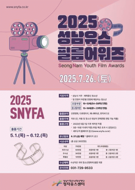 [NWS¹æ¼Û=Çѽ¸ñ ±âÀÚ]¼º³²½Ãû¼Ò³âû³âÀç´Ü Á¤ÀÚÀ¯½º¼¾ÅͰ¡ û¼Ò³â ¿µÈ­Á¦ ¡®2025 ¼º³²À¯½ºÇʸ§¾î¿öÁî(SNYFA)¡¯ ¸¦ ¿­°í, 5¿ù 1ÀϺÎÅÍ 6¿ù 12ÀϱîÁö û¼Ò³âÀÌ Á¦ÀÛÇÑ ¿µ»ó ÀÛǰÀ» °ø¸ðÇÑ´Ù. ¿ÃÇØ 2ȸ¸¦ ¸Â´Â ¼º³²À¯½ºÇʸ§¾î¿öÁî(SNYFA)¡¦