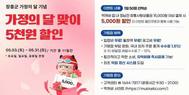 [NWS¹æ¼Û=Çѽ¸ñ ±âÀÚ]ÀåÈﱺÀÌ 5¿ù °¡Á¤ÀÇ ´ÞÀ» ¸Â¾Æ Áö¿ª»ç¶û»óǰ±Ç Ȱ¿ëÀ» ÅëÇÑ Áö¿ª°æÁ¦ Ȱ¼ºÈ­¸¦ À§ÇØ °ø°ø¹è´Þ¾Û ¸Ô±úºñ ÀåÈﱺ ÁÖ¸» ÇÒÀÎ À̺¥Æ®¸¦ ½Ç½ÃÇÑ´Ù. À̹ø ÇÒÀÎ À̺¥Æ®´Â 5¿ù ÇÑ´Þ°£ ¸Ô±úºñ ¾ÛÀ» ÅëÇØ ¸ÅÁÖ Åä¿äÀϰú ÀϿ䡦