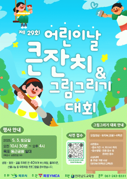 [NWS¹æ¼Û=Çѽ¸ñ ±âÀÚ]¸ñÆ÷½Ã´Â Á¦103ȸ ¾î¸°À̳¯À» ±â³äÇØ ¿À´Â 5¿ù 3ÀÏ ¿ÀÀü 10½Ã 30ºÐºÎÅÍ ¿ÀÈÄ 4½Ã±îÁö ºÎÈﵿ µÕ±Ù°ø¿ø ÀÏ´ë¿¡¼­ ¡®2025³â ¸ñÆ÷½Ã ¾î¸°À̳¯ Å«ÀÜÄ¡¡¯¸¦ °³ÃÖÇÑ´Ù. ¸ñÆ÷½Ã°¡ ÁÖÃÖÇÏ°í ¸ñÆ÷YMCA(¾î¸°À̳¯ Å«ÀÜÄ¡ ÃßÁø¡¦