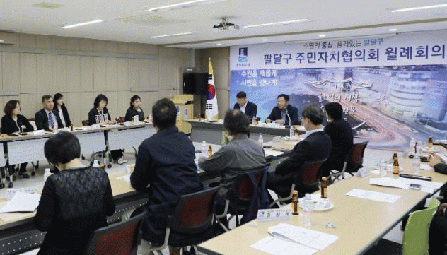 [NWS¹æ¼Û=Çѽ¸ñ ±âÀÚ]¼ö¿ø½Ã ÆÈ´Þ±¸´Â Áö³­ 29ÀÏ ¸Å»êµ¿ ÇàÁ¤º¹Áö¼¾ÅÍ ´ëȸÀǽǿ¡¼­ °¢ µ¿ ÁÖ¹ÎÀÚÄ¡ ȸÀå°ú »ç¹«±¹Àå ¹× ¸Å»êµ¿ ´ÜüÀå µî 40¿©¸íÀÌ Âü¼®ÇÑ °¡¿îµ¥ ÆÈ´Þ±¸ ÁÖ¹ÎÀÚÄ¡ÇùÀÇȸ 4¿ù ¿ù·ÊȸÀǸ¦ °³ÃÖÇß´Ù. À̳¯ ȸÀÇ¿¡¼­´Â ¡â¡¦