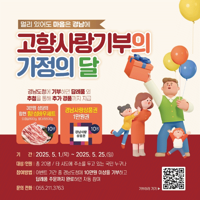 [»çȸ] °æ³²µµ, ¡®°íÇâ»ç¶û±âºÎÁ¦ Ưº° À̺¥Æ®¡¯ ÁøÇà... 5¿ù °¡Á¤ÀÇ ´Þ ¡°¸Ö¸® À־ ¸¶À½Àº °íÇâ¿¡¡± |2025. 04.30