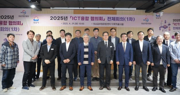 [NWS¹æ¼Û=Çѽ¸ñ ±âÀÚ]¼º³²»ê¾÷ÁøÈï¿øÀº 4¿ù 29ÀÏ ¿ÀÀü 10½Ã, ¼º³²±Û·Î¹úÀ¶ÇÕ¼¾ÅÍ¿¡¼­ 2025³â 'ICT À¶ÇÕ ÇùÀÇȸ' 1Â÷ ÀüüȸÀǸ¦ °³ÃÖÇß´Ù. À̹ø ȸÀÇ´Â ¼º³²½Ã ICT ºÐ¾ß ±â¾÷ÀÌ Âü¿©ÇÏ´Â 4Â÷ »ê¾÷ °¡Ä¡»ç½½ ³×Æ®¿öÅ©¸¦ ±¸ÃàÇϰí, ¹ÝµµÃ¼¡¦