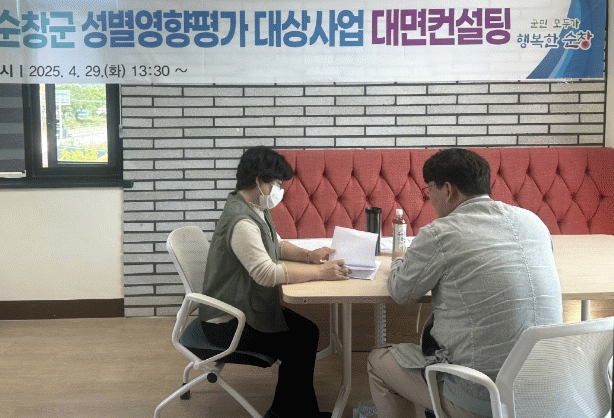 [NWS¹æ¼Û=Çѽ¸ñ ±âÀÚ]¼øÃ¢±ºÀº Áö³­ 29ÀÏ Ã»³â¹®È­¼¾ÅÍ¿¡¼­ '2025³â ¼ºº°¿µÇâÆò°¡ ´ë»ó»ç¾÷'À» ´ë»óÀ¸·Î ´ã´çÀÚº° ´ë¸é ÄÁ¼³ÆÃÀ» ½Ç½ÃÇß´Ù. À̹ø ÄÁ¼³ÆÃÀº ½Å±Ô»ç¾÷, ¾ÈÀü»ç¾÷, û³â ¹× ³ó¾÷ °ü·Ã »ç¾÷ µî ÃÑ 20°ÇÀ» ´ë»óÀ¸·Î, »ç¾÷°èȹ¡¦