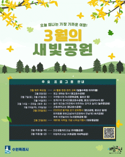 [NWS¹æ¼Û=Çѽ¸ñ ±âÀÚ] ¼ö¿øÆ¯·Ê½Ã´Â 3¿ù ÇÑ ´Þ°£ µµ½Ã°ø¿ø¿¡¼­ ´Ùä·Î¿î ½Ã¹Î Âü¿©Çü º½¸ÂÀÌ ÇÁ·Î±×·¥À» ¿î¿µÇÑ´Ù. »ýÅ¡¤¹®È­¡¤Ã¼À° Ȱµ¿À» È®´ëÇØ °ø¿øÀ» ÀÏ»ó ¼Ó üÇè°ú ¿©°¡ÀÇ °ø°£À¸·Î Ȱ¿ëÇÒ °èȹÀÌ´Ù. ±¤±³»ê ÀÏ´ë¿¡¼­ 3¿ù 28ÀÏ¡¦
