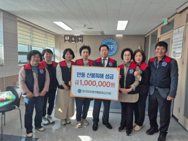 [NWS¹æ¼Û=Çѽ¸ñ ±âÀÚ]Çѱ¹ÀÚÀ¯ÃÑ¿¬¸Í ºÀÈ­±ºÁöȸ´Â Áö³­ 4¿ù 28ÀÏ ´ë±Ô¸ð »êºÒ·Î ÇÇÇØ¸¦ ÀÔÀº °æ»óºÏµµ 5°³ ½Ã±º(¾Èµ¿½Ã, ¿µ¾ç±º, û¼Û±º, ÀǼº±º, ¿µ´ö±º)À» Á÷Á¢ ¹æ¹®ÇØ ÃÑ 500¸¸ ¿ø(½Ã±ºº° 100¸¸ ¿ø)ÀÇ ¼º±ÝÀ» Àü´ÞÇß´Ù. À̹ø ¼º±ÝÀº¡¦