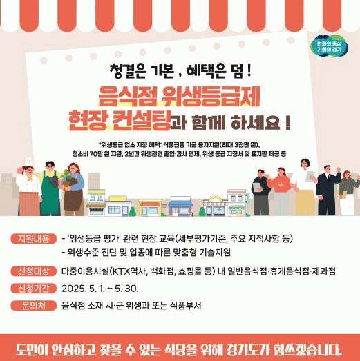 [»çȸ] °æ±âµµ, ¼ÒºñÀÚ½ÄǰÀ§»ý°¨½Ã¿ø°ú À½½ÄÁ¡ À§»ýµî±ÞÁ¦ ¹«·á ÇöÀå ÄÁ¼³ÆÃ |2025. 04.30