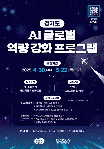 [»çȸ] °æ±âµµ, AI ½ºÅ¸Æ®¾÷ ±Û·Î¹ú ÁøÃâ Áö¿ø Âü°¡±â¾÷ ¸ðÁý |2025. 04.30