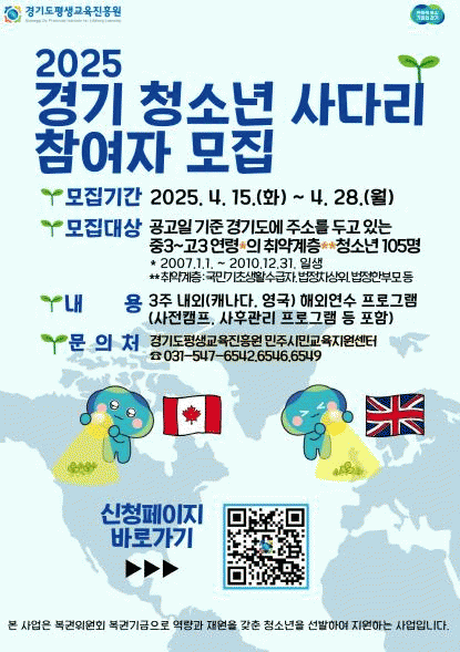 [NWS¹æ¼Û=Çѽ¸ñ ±âÀÚ]°æ±âµµ Ãë¾à°èÃþ û¼Ò³âÀ» ´ë»óÀ¸·Î ¿î¿µÇÏ´Â ¡®°æ±â û¼Ò³â »ç´Ù¸®¡¯ ÇØ¿Ü¿¬¼ö »ç¾÷ÀÌ 4.4´ë1 °æÀï·üÀ» ±â·ÏÇϸç Âü¿©ÀÚ ¸ðÁýÀ» ¸¶°¨Çß´Ù. ÀÛ³â óÀ½ ½ÃÇàµÈ ¡®°æ±â û¼Ò³â »ç´Ù¸®¡¯´Â »çȸ?°æÁ¦Àû ¿©°ÇÀÌ ¾î·Á¿î¡¦