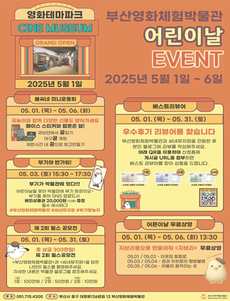 [NWS¹æ¼Û=Çѽ¸ñ ±âÀÚ]ºÎ»ê½Ã´Â ¿À´Â 5¿ù 5ÀÏ ¿ÀÀü 10½ÃºÎÅÍ ¿ÀÈÄ 3½Ã±îÁö ¿µÈ­ÀÇÀü´ç ÀÏ¿ø¿¡¼­ '2025 Á¦52ȸ ºÎ»ê ¾î¸°À̳¯ Å«ÀÜÄ¡'¸¦ °³ÃÖÇÑ´Ù°í ¹àÇû´Ù. À̹ø Çà»ç´Â ¾î¸°À̳¯(5.5.)°ú ¾î¸°ÀÌ ÁÖ°£(5.1.~5.7.)À» ¸Â¾Æ ¾î¸°ÀÌ¿Í °¡Á·¡¦