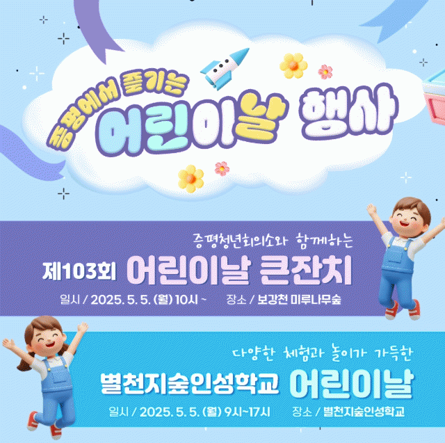 [»çȸ] ÁõÆò±º 5¿ù 5ÀÏ ¾î¸°À̳¯! ÁõÆò °÷°÷¿¡¼­ ´Ùä·Î¿î Çà»ç ¿­¸°´Ù. |2025. 04.30