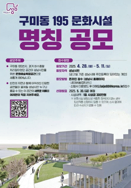 [»çȸ] ¼º³²½Ã '±¸¹Ìµ¿ 195¹øÁö ¹®È­½Ã¼³' ¸íĪ °ø¸ð¡¦»ó±Ý 300¸¸¿ø |2025. 04.30