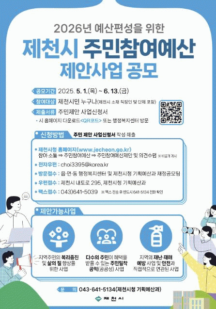 [»çȸ] Á¦Ãµ½Ã, ÁÖ¹ÎÂü¿©¿¹»ê Á¦¾È»ç¾÷ °ø¸ð |2025. 04.30