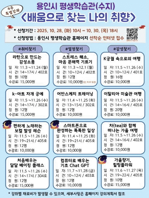 [»çȸ] ¿ëÀÎÆ¯·Ê½Ã, Æò»ýÇнÀ°ü Ưº°°­Á ¼ö°­»ý ¸ðÁý |2025. 10.22
