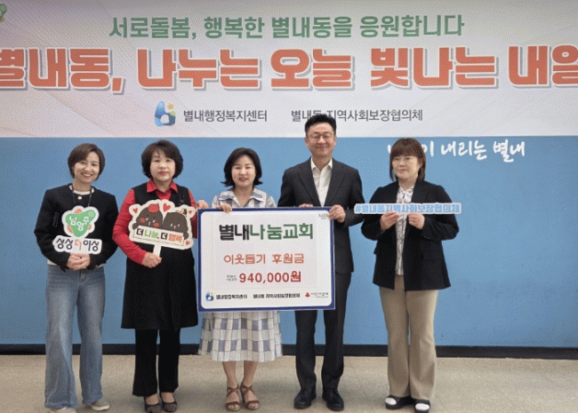 [NWS¹æ¼Û=Çѽ¸ñ ±âÀÚ]³²¾çÁֽô Áö³­ 28ÀÏ, º°³»µ¿¿¡ ¼ÒÀçÇÑ º°³»³ª´®±³È¸°¡ ºÎȰÀýÀ» ¸Â¾Æ °ü³» Ãë¾à°èÃþÀ» µ½±â À§ÇØ ¸ð±ÝÇÑ ¼º±ÝÀ» ÈÄ¿øÇß´Ù°í 29ÀÏ ¹àÇû´Ù. ÈÄ¿ø±Ý 94¸¸ ¿øÀº °æ±â»çȸº¹Áö°øµ¿¸ð±Ýȸ¸¦ ÅëÇØ º°³»ÇàÁ¤º¹Áö¼¾ÅÍ¿¡ ±â¡¦