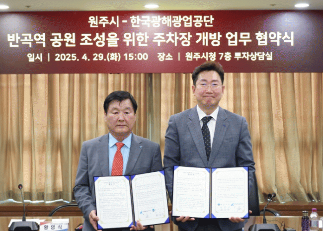 [»çȸ] ¿øÁÖ½Ã-Çѱ¹±¤Çر¤¾÷°ø´Ü, °ø´ÜÁÖÂ÷Àå ÁÖ¸»°³¹æ Çù¾à |2025. 04.29