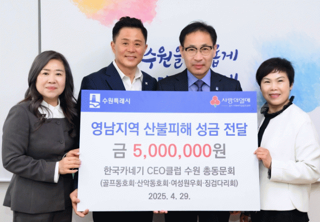 [»çȸ] Çѱ¹Ä«³×±â CEOŬ·´ ¼ö¿ø Ãѵ¿¹®È¸, ¡°¿µ³²Áö¿ª »êºÒÇÇÇØ Áö¿ø¿¡ »ç¿ëÇØ ´Þ¶ó¡± 500¸¸ ¿ø ±âŹ |2025. 04.29