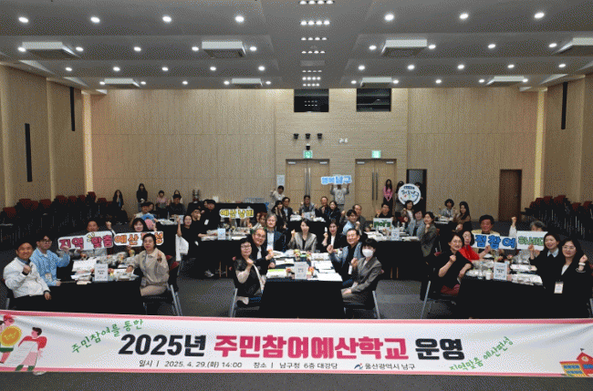 [NWS¹æ¼Û=Çѽ¸ñ ±âÀÚ] ¿ï»ê ³²±¸´Â 29ÀÏ ³²±¸Ã» 6Ãþ ´ë°­´ç¿¡¼­ ÁÖ¹ÎÂü¿©¿¹»êÀ§¿ø°ú µ¿ Áö¿ªÈ¸ÀÇ ´ã´çÀÚµéÀ» ´ë»óÀ¸·Î ¡®2025³â ÁÖ¹ÎÂü¿©¿¹»êÇб³¡¯¸¦ °³ÃÖÇß´Ù. À̹ø ÁÖ¹ÎÂü¿©¿¹»êÇб³´Â Áö³­ÇØ ÁÖ¹ÎÂü¿©¿¹»êÁ¦ ¼º°ú¿Í ¿ÃÇØ ¿î¿µ°èȹ¡¦